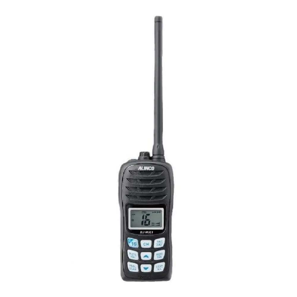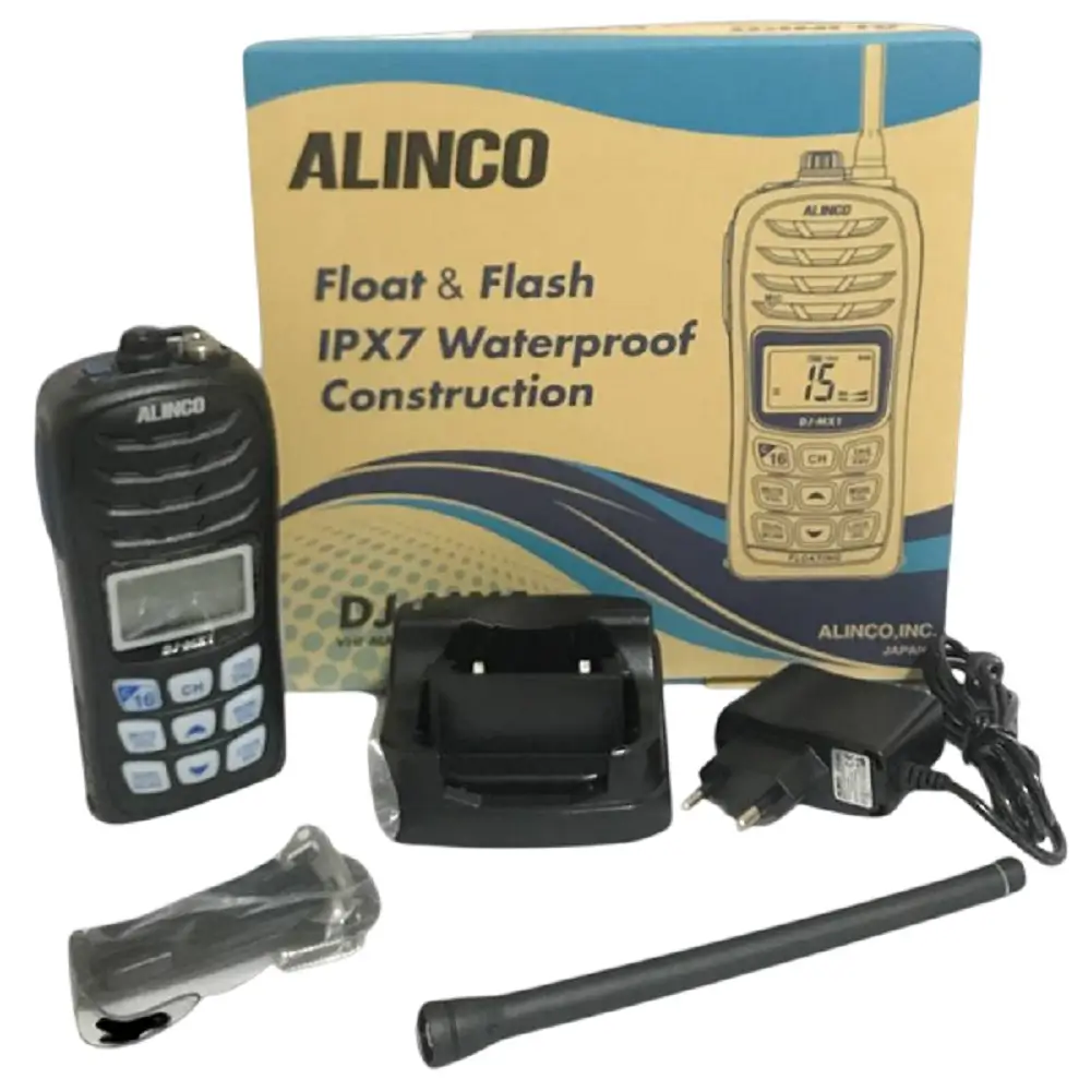 Alinco DJ-MX1 adalah handy talky VHF marine untuk membantu anda berkomunikasi dengan jelas di laut. Radio marine ini menggunakan frekuensi VHF dan dapat digunakan bahkan saat terkena air karena memiliki kemampuan tahan air.